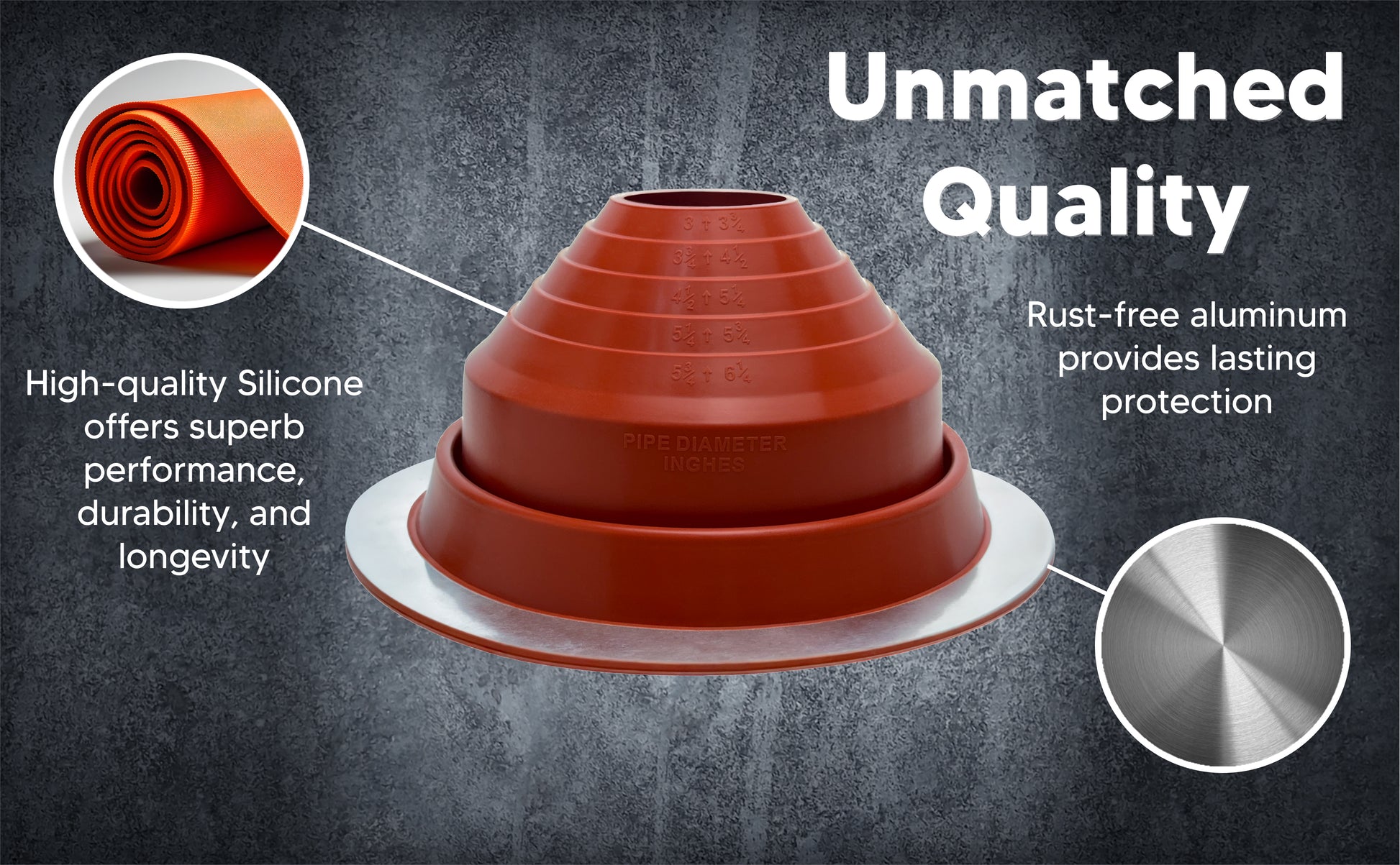 - Secure Sealing: Silicone rubber boot with flexible aluminum collar seals tightly against uneven metal roofing.